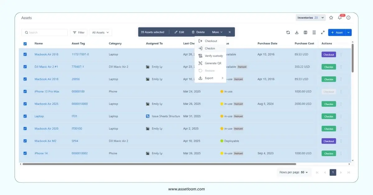 Bulk check in function in AssetLoom
