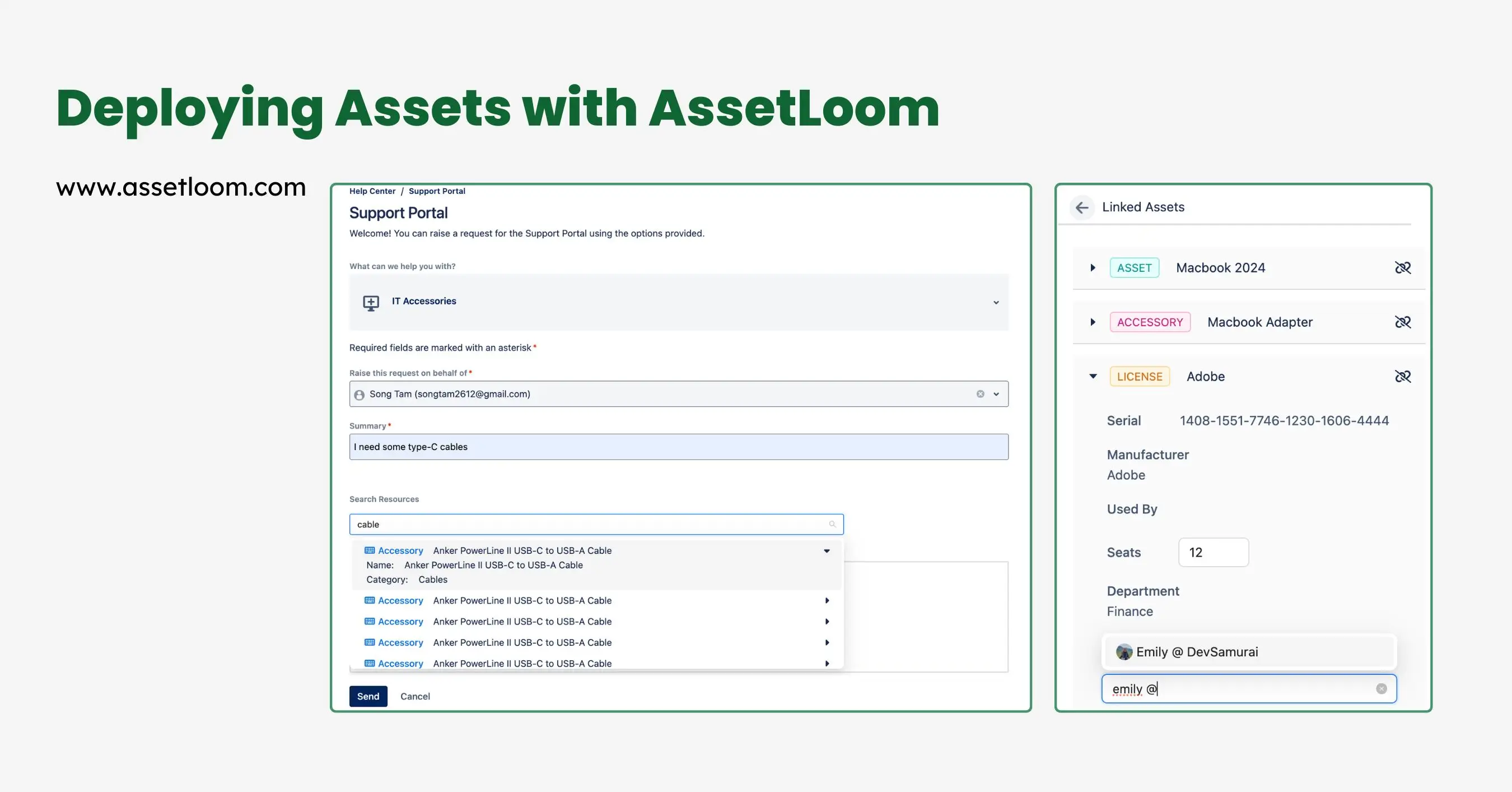 - Assigns assets to users or departments.