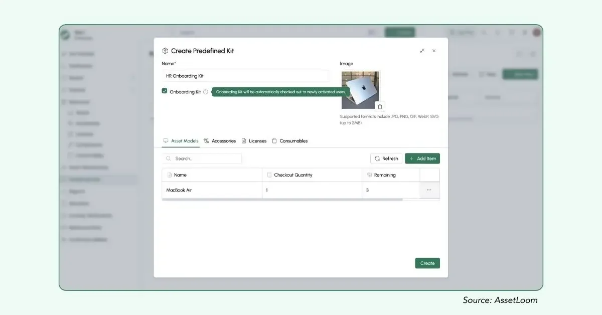 Employee Onboarding Asset Kit in AssetLoom
