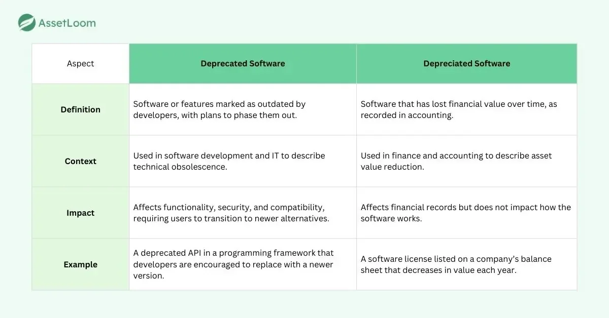 To clarify, here are the main differences between deprecated and depreciated software: