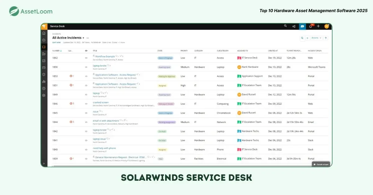 SolarWinds Service Desk includes IT asset management features as part of its broader service desk solution.