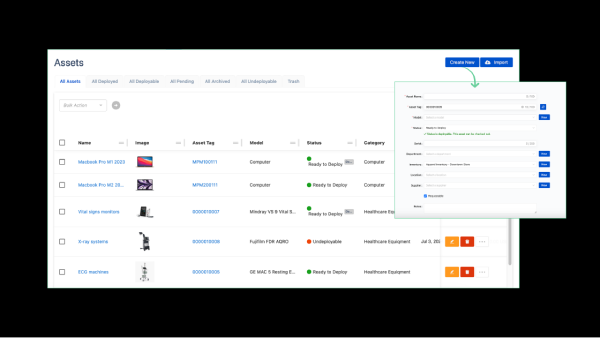 包括的な資産プロファイル: 資産名、タグ、モデル、状態、場所などの詳細を追加して、各資産の完全な概要を作成します。