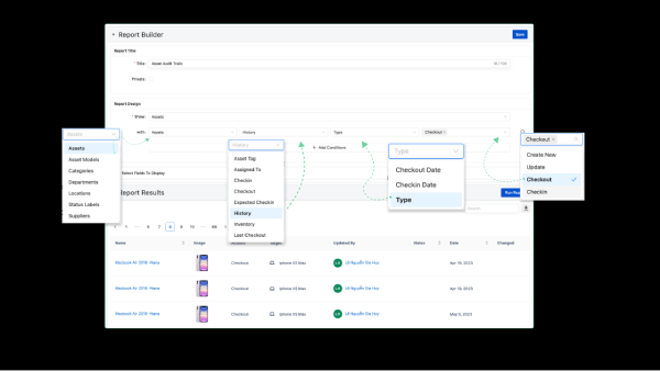 割当追跡: 資産をチームや場所に割り当て、リアルタイムで使用状況を監視します。