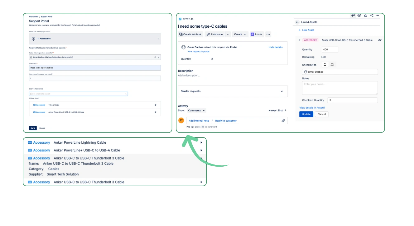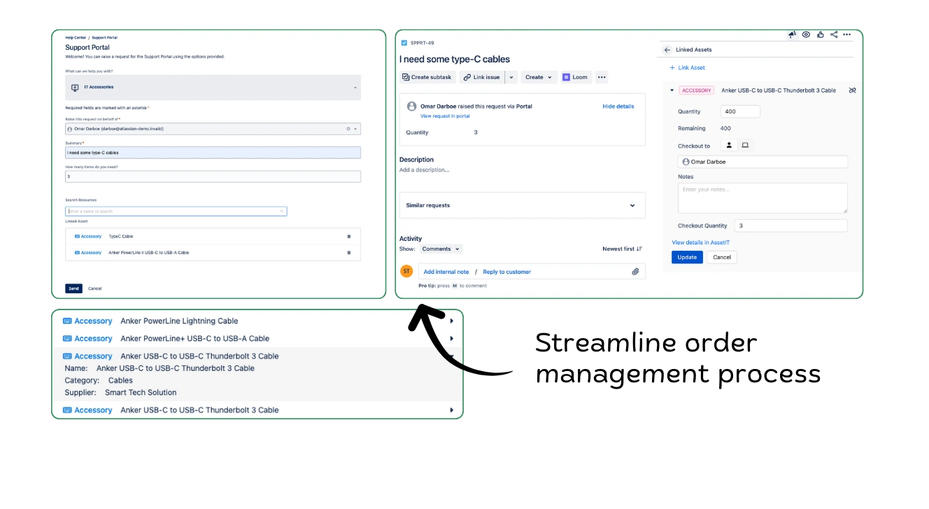 • サービスデスク統合: リクエストポータルを通じて簡単にアイテムをリクエストできます。